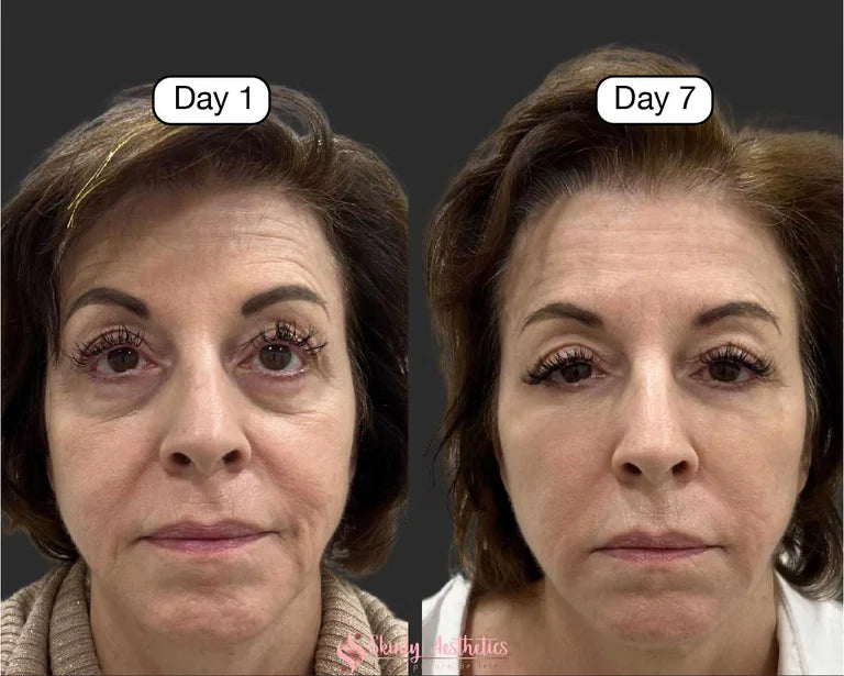 Most users notice visible de-puffing and a lighter, more defined look in 60 seconds.