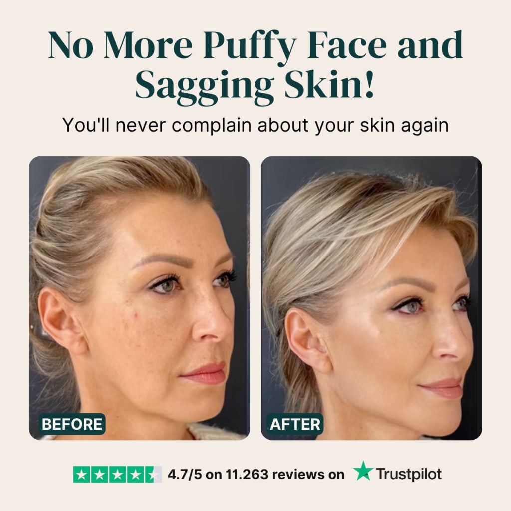 What to expect: immediate de-puff and a cleaner jaw contour; glow and definition compound with daily use.